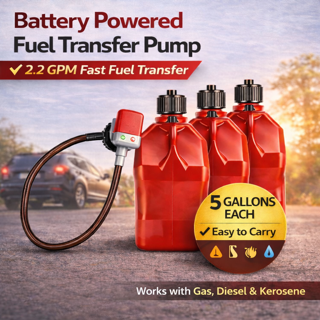 3-Pack Utility Jugs with Cordless Battery Liquid Transfer Pump for Fuel, Water & Automotive Use
