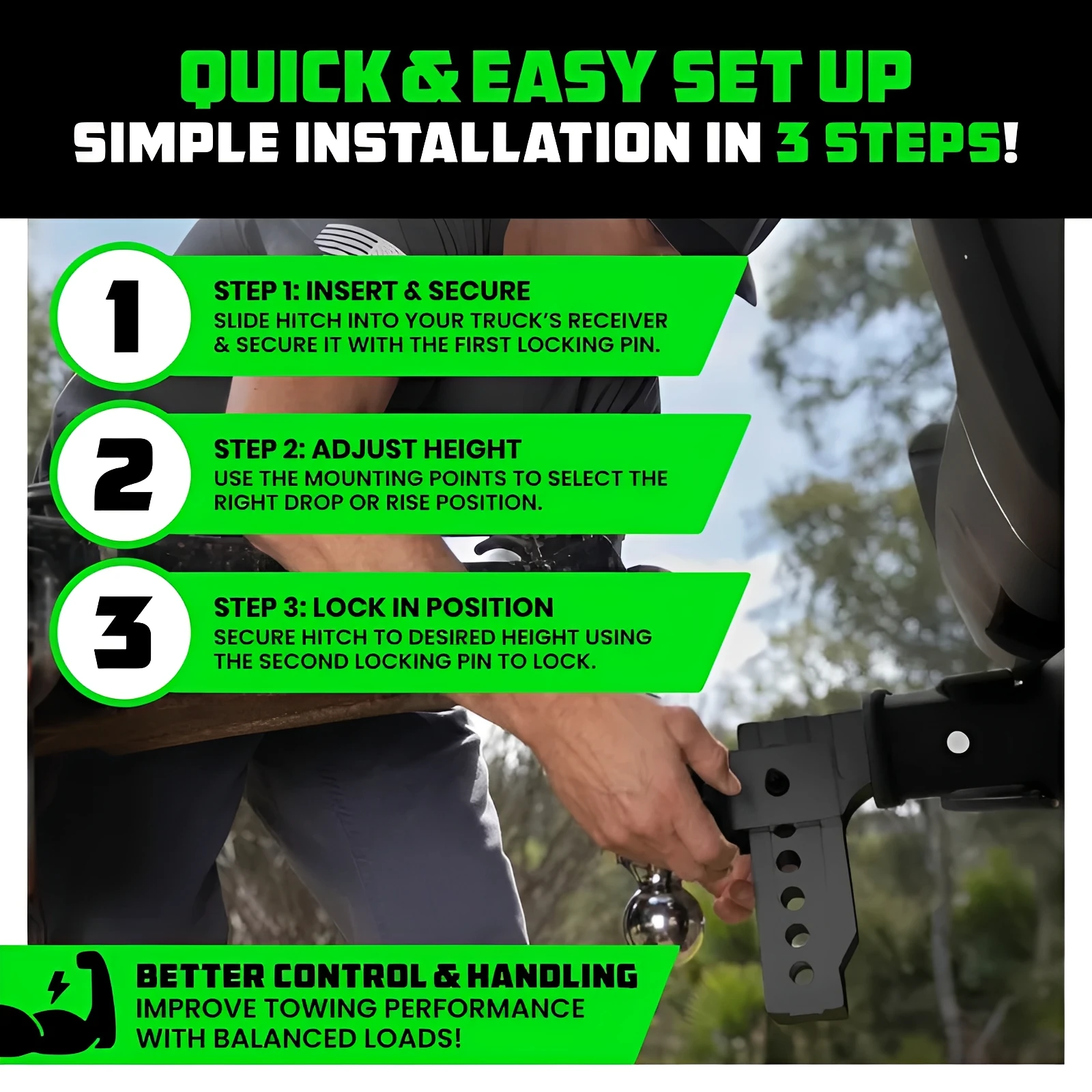 Adjustable Trailer Hitch 2 inch Receiver - Heavy Duty Aluminum Drop Hitch with 12,500lb GTW Towing Capacity for Hauling Heavy Trucks, RV, Trailer, Camper