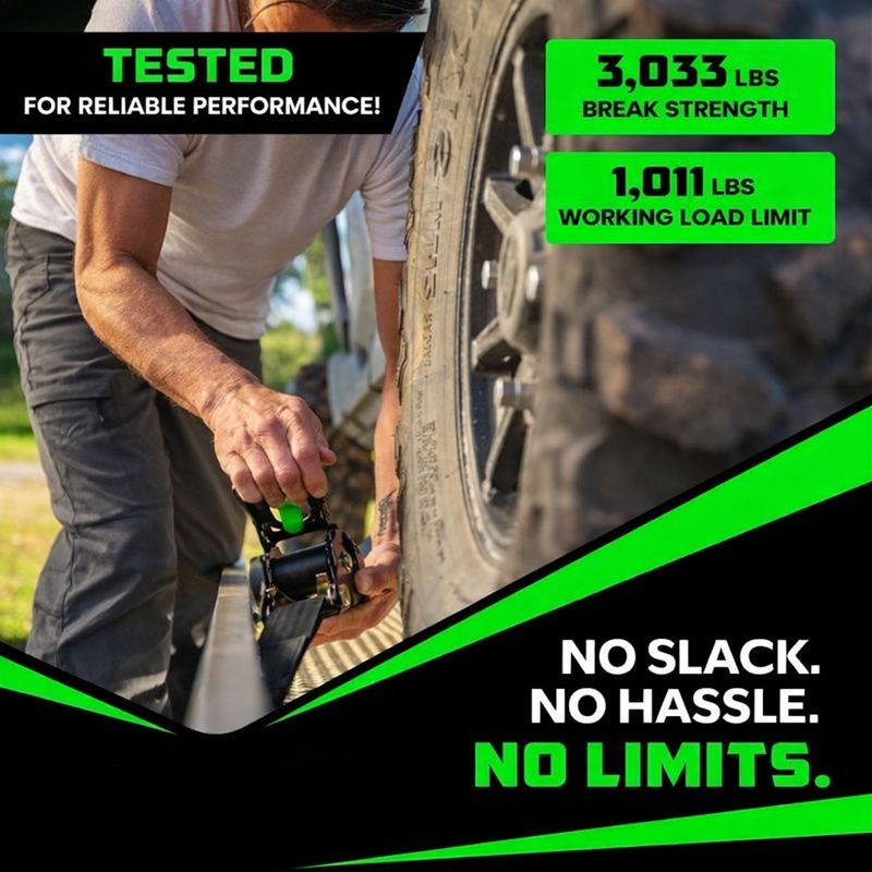 2" x 10' Retractable Ratchet Straps, Heavy-Duty 3,033 lb Break Strength, 2- or 4-Pack