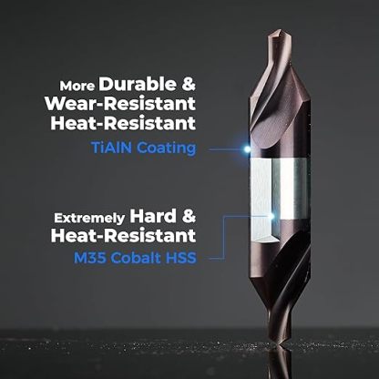 toolant Center Drill Bit Set, TiAlN Coated Cobalt M35 HSS Centering Drill Bit